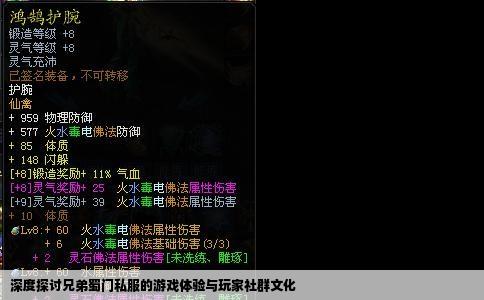 随着网络游戏的发展,越来越多的私服如兄弟蜀门私服逐渐在玩家社群中崭露头角。本文将围绕兄弟蜀门私服展开讨论,探讨其游戏体验的独特之处以及玩家社群文化的形成。兄弟蜀门私服概述兄弟蜀门私服是一款以蜀门为背景的网络游戏私服版本。该私服在保留原版游戏的基础上,通过调整游戏设定、优化游戏体验等手段,为玩家带...